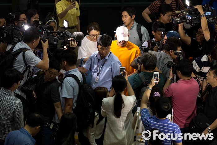 (인천공항=포커스뉴스) 리우 올림픽 출전이 확정된 '마린보이' 박태환이 14일 오후 인천국제공항에서 기자회견을 마치고 빠져나가고 있다.