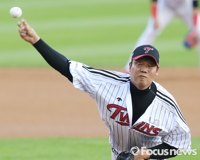 (서울=포커스뉴스) 14일 서울 잠실구장에서 열린 2016 프로야구 한화-LG 경기에서 1회초 LG 선발투수 류제국이 투구하고 있다.
