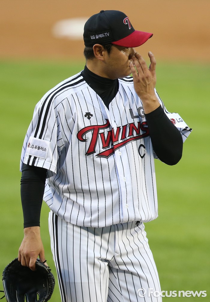 (서울=포커스뉴스) 14일 서울 잠실구장에서 열린 2016 프로야구 한화-LG 경기 2회초 2사 1,2루에서 LG 선발 류제국이 교체돼 마운드에서 내려와 덕아웃으로 들어가고 있다.