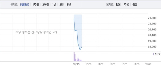 장원테크는 이날 오전 9시38분 현재 시초가 대비 3350원(15.06%) 하락한 1만8900원에 거래되고 있다. 장원테크의 공모가는 1만7500원이다.