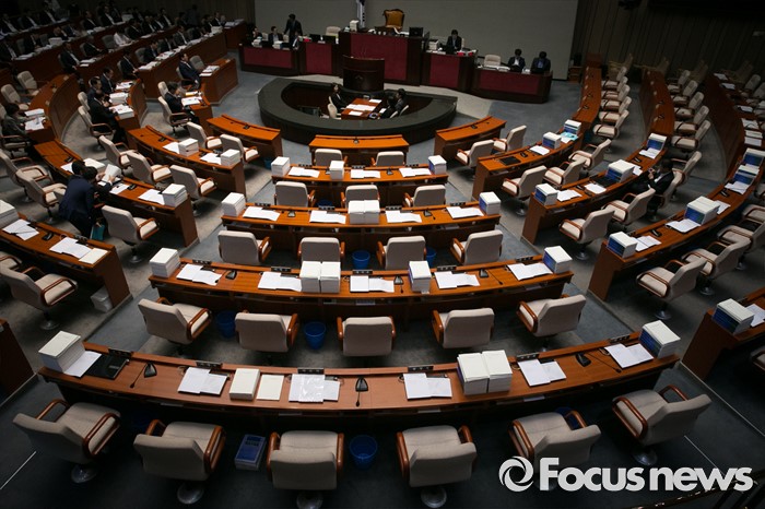 (서울=포커스뉴스) 15일 오전 서울 여의도 국회에서 예정된 예산결산특별위원회 전체회의에 새누리당 의원들이 불참해 빈 자리가 보이고 있다. 이날 새누리당은 더불어민주당 소속 홍영표 국회 환경노동위원장이 야당 단독으로 예비비 지출안 등을 처리한 것과 관련해 홍 위원장의 사퇴를 요구하며 모든 상임위 보이콧을 선언했다.