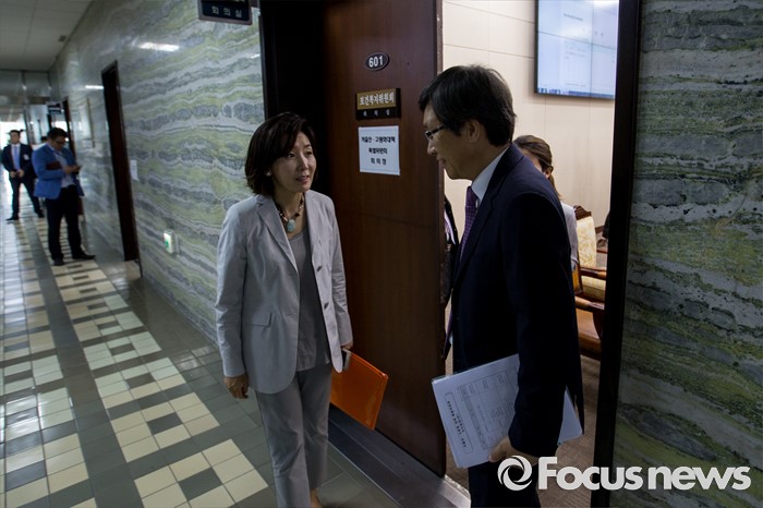 (서울=포커스뉴스) 나경원 국회 저출산-고령화 대책특위 위원장이 15일 오전 서울 여의도 국회에서 예정된 저출산-고령화 대책 특별위원회 1차 전체회의에 새누리당 의원들의 불참으로 파행되자 회의실을 나서고 있다. 이날 새누리당은 더불어민주당 소속 홍영표 국회 환경노동위원장이 야당 단독으로 예비비 지출안 등을 처리한 것과 관련해 홍 위원장의 사퇴를 요구하며 모든 상임위 보이콧을 선언했다.