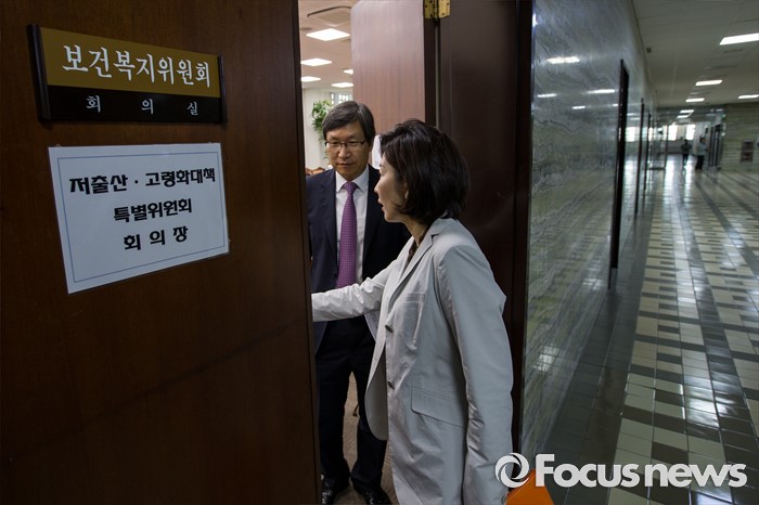 (서울=포커스뉴스) 나경원 국회 저출산-고령화 대책특위 위원장이 15일 오전 서울 여의도 국회에서 예정된 저출산-고령화 대책 특별위원회 1차 전체회의에 새누리당 의원들의 불참으로 파행되자 회의실을 나서고 있다. 이날 새누리당은 더불어민주당 소속 홍영표 국회 환경노동위원장이 야당 단독으로 예비비 지출안 등을 처리한 것과 관련해 홍 위원장의 사퇴를 요구하며 모든 상임위 보이콧을 선언했다.