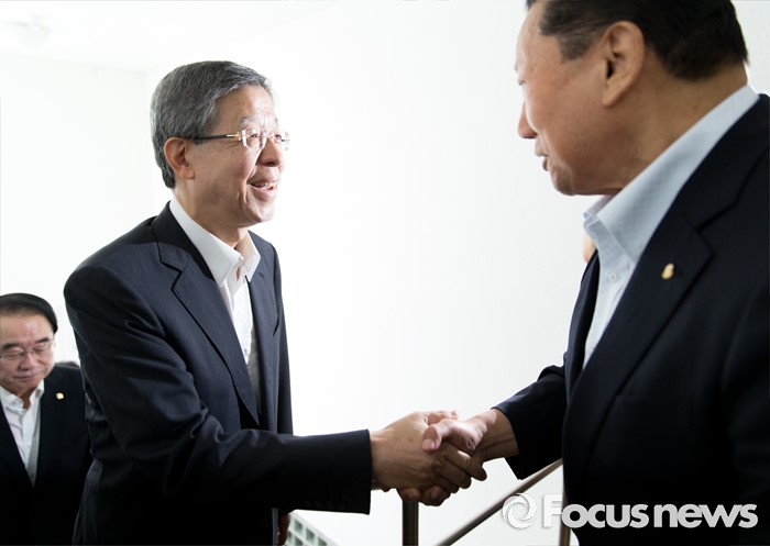 | △ 인사하는 김희옥과 김정행 |