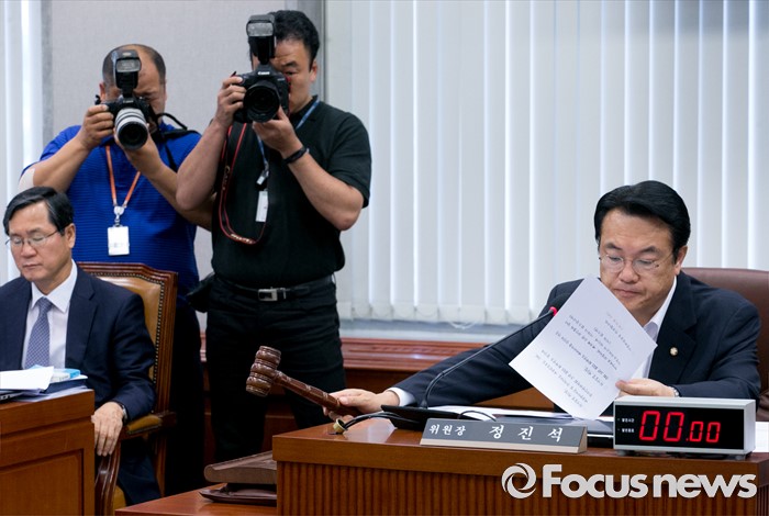 (서울=포커스뉴스) 15일 오후 서울 여의도 국회에서 열린 운영위원회 전체회의에 참석한 정진석 위원장이 안건 의결을 하고 있다.