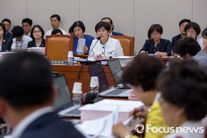 (서울=포커스뉴스) 강은희 여성가족부 장관이 15일 오후 서울 여의도 국회에서 열린 '여성가족위원회 전체회의'에 참석해 질의응답 하고 있다.