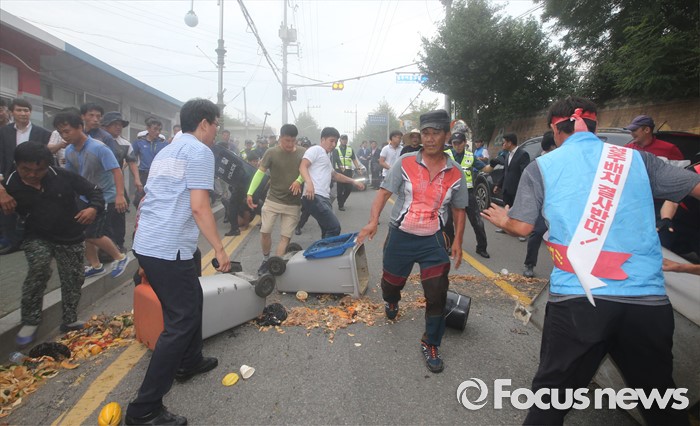 (성주=포커스뉴스) 황교안 국무총리와 한민구 국방부장관이 15일 경북 성주군청광장에서 사드(THAAD, 고고도미사일방어체계) 배치에 대한 주민설명회를 마치고 차량에 갖혀 6시간 넘게 대치중 버스에서 내려 승용차로 빠져나가려 하자 성주 주민들이 총리가 탑승한 차량을 막고 있다.