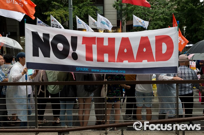 (서울=포커스뉴스) 16일 오후 서울 종로구 청계광장에서 사드한국배치반대전국대책회의 회원들이 사드 배치 결정 철회 평화행동을 하고 있다.