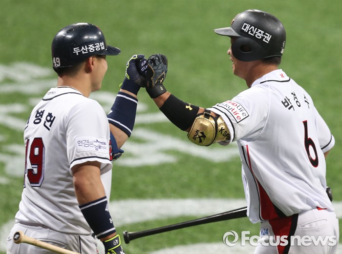 | △ 박경수를 환영하는 민병헌 |