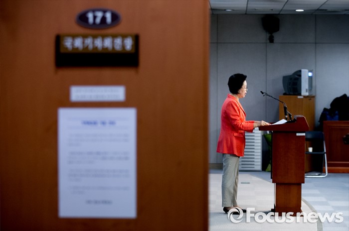 (서울=포커스뉴스) 이은재 새누리당 의원이 18일 오전 서울 여의도 국회 정론관에서 8·9 전당대회 최고위원 출마 기자회견을 하고 있다.