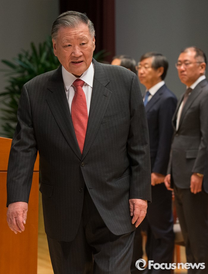 또 정 회장은 "제네시스 G80, G90의 성공적인 미국 런칭을 통해 글로벌 고급차 시장에서 브랜드 입지를 탄탄히 다지고, 친환경차 라인업 확대는 물론 생산, 판매 능력을 배가시켜 친환경 자동차 시장을 주도하자"고 주문했다.(서울=포커스뉴스) 4일 오전 서울 서초구 현대자동차 본사 대강당에서 열린 2016년도 시무식에 정몽구 현대차그룹 회장이 참석하고 있다. 2016.01.04 양지웅 기자