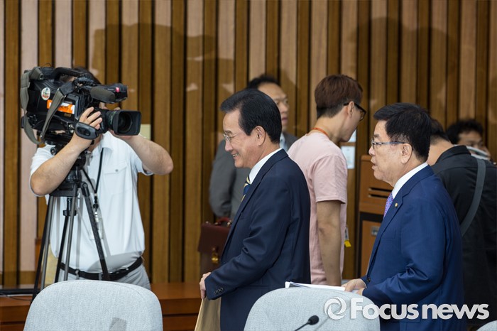 (서울=포커스뉴스) 김광림(오른쪽) 새누리당 정책위의장과 변재일 더불어민주당 정책위의장이 18일 오전 서울 여의도 국회에서 열린 '3당 정책위의장-경제부총리, 3차 민생경제 현안점검회의'에 참석하기 위해 회의실로 들어서고 있다.