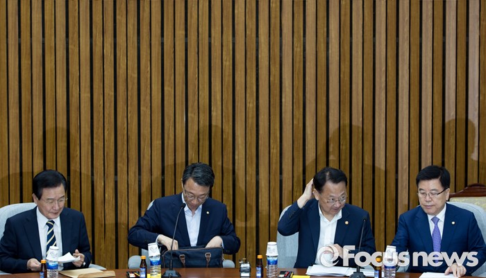 (서울=포커스뉴스) 여야3당 정책위의장과 경제부총리가 18일 오전 서울 여의도 국회에서 열린 '3당 정책위의장-경제부총리, 3차 민생경제 현안점검회의'에 참석해 회의 준비를 하고 있다. 왼쪽부터 변재일 더불어민주당 정책위의장, 김성식 국민의당 정책위의장, 유일호 경제부총리 겸 기획재정부 장관, 김광림 새누리당 정책위의장.