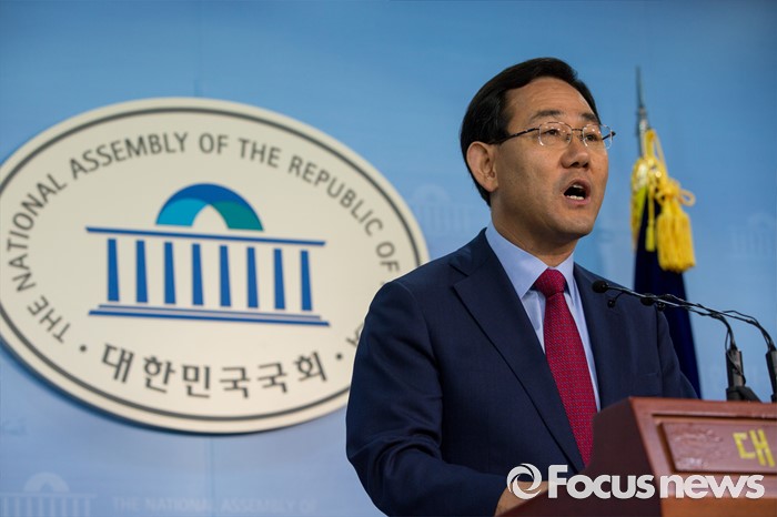 (서울=포커스뉴스) 주호영 새누리당 의원이 18일 오전 서울 여의도 국회에서 오는 8월9일 열릴 전당대회 당대표 출마 선언을 하고 있다.