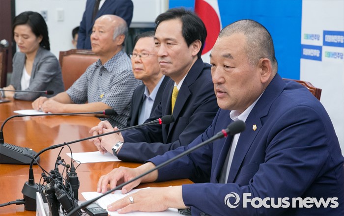 (서울=포커스뉴스) 18일 오전 서울 여의도 국회에서 열린 우상호 더불어민주당 원내대표와 사드반대 전국대책회의 등 관련단체 면담에 참석한 노광희(오른쪽 첫번째) 성주군의회 의원이 발언하고 있다.