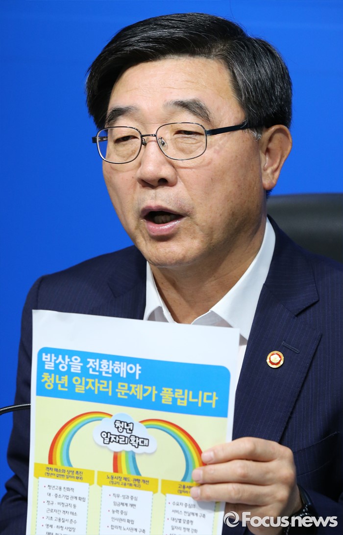 (세종=포커스뉴스) 이기권 고용노동부장관이 18일 오전 세종시 정부세종청사 고용노동부 기자실에서 2016년 하반기 고용노동정책 방향에 대한 브리핑을 하고 있다.
