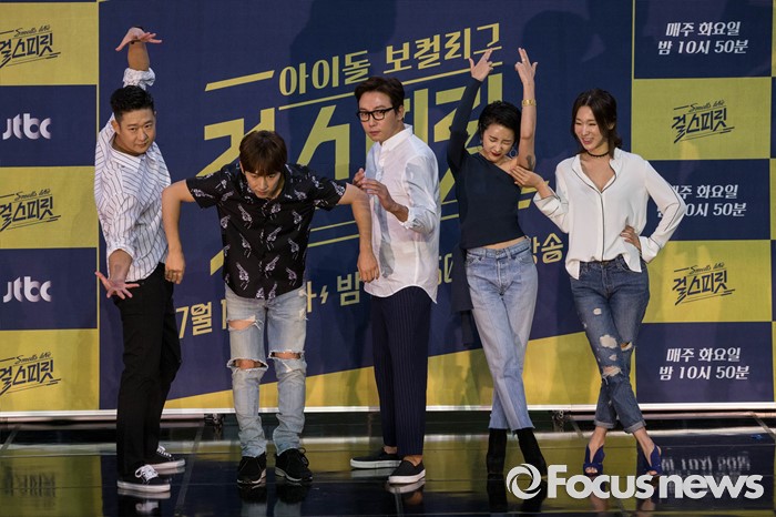 (일산=포커스뉴스) 18일 오후 경기도 고양시 일산동구에 위치한 일산 빛마루 방송지원센터에서 'JTBC 걸스피릿 제작 발표회가 열리고 있다. '걸스피릿'은 여자 아이돌 보컬들의 숨겨진 실력을 경연하는 프로그램으로 걸 그룹 메인보컬 12인이 경연을 하여 파이널 리그에서 최종 우승자가 선정된다.