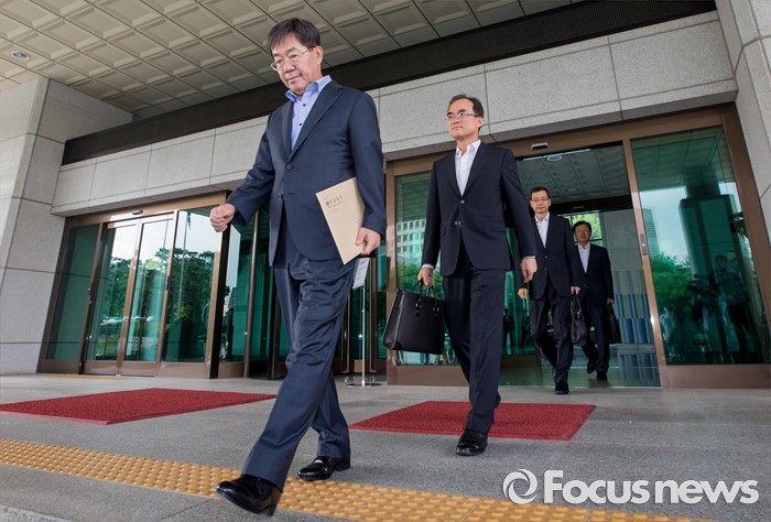 (서울=포커스뉴스) 18일 오후 서울 서초구 대검찰청에서 전국 고검장 간담회가 마친 후 박성재(맨 앞) 서울고검장을 비롯한 전국 고검장들이 청사 밖으로 발걸음을 옮기고 있다. 검찰은 이날 간담회를 통해 진경준 검사장의 뇌물수수 사건과 관련해 일선 검찰청의 의견을 수렴하고 대책을 논의하기로 밝혔으나, 언론에 비공개로 진행했다.