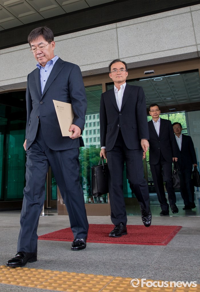 (서울=포커스뉴스) 18일 오후 서울 서초구 대검찰청에서 전국 고검장 간담회가 마친 후 박성재(맨 앞) 서울고검장을 비롯한 전국 고검장들이 청사 밖으로 발걸음을 옮기고 있다. 검찰은 이날 간담회를 통해 진경준 검사장의 뇌물수수 사건과 관련해 일선 검찰청의 의견을 수렴하고 대책을 논의하기로 밝혔으나, 언론에 비공개로 진행했다.
