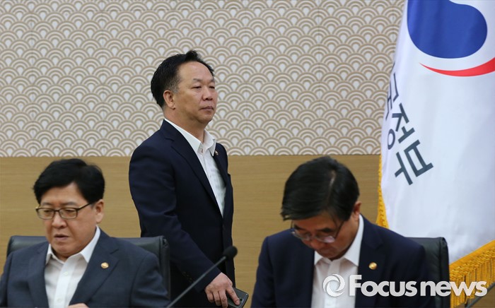 (세종=포커스뉴스) 김동극 인사혁신처장이 19일 오전 세종시 정부세종청사 국무회의장에서 서울-세종 간 영상회의로 열린 국무회의에 참석하고 있다.