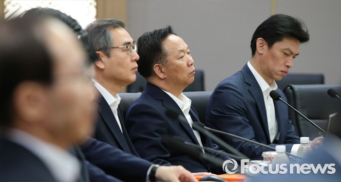 (세종=포커스뉴스) 19일 오전 세종시 정부세종청사 국무회의장에서 서울-세종 간 영상회의로 열린 국무회의에 참석한 국무위원들이 황교안 국무총리의 발언을 경청하고 있다. 오른쪽부터 손문기 식품의약품안전처장, 김동극 인사혁신처장, 정재찬 공정거래위원장, 윤성규 환경부장관.