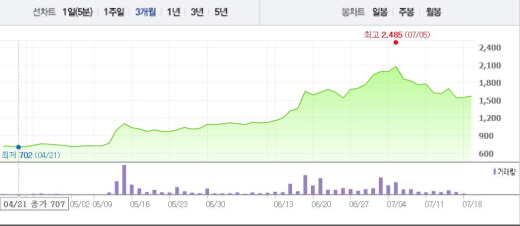 앞서 키스톤글로벌은 6월10일부터 17일까지 6거래일 연속 상승세를 나타내는 등 꾸준히 상승 곡선을 그려왔다. 그렇지만 6일부터 8일까지 1~10%의 낙폭을, 12일과 13일 다시 낙폭을 기록하면서 상승 탄력이 둔화된 것 아니냐는 의견이 나왔다.