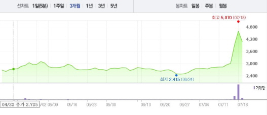 이는 2주 전 주가인 5일(2760원)과 비교했을 때 48.3% 상승한 수치다.