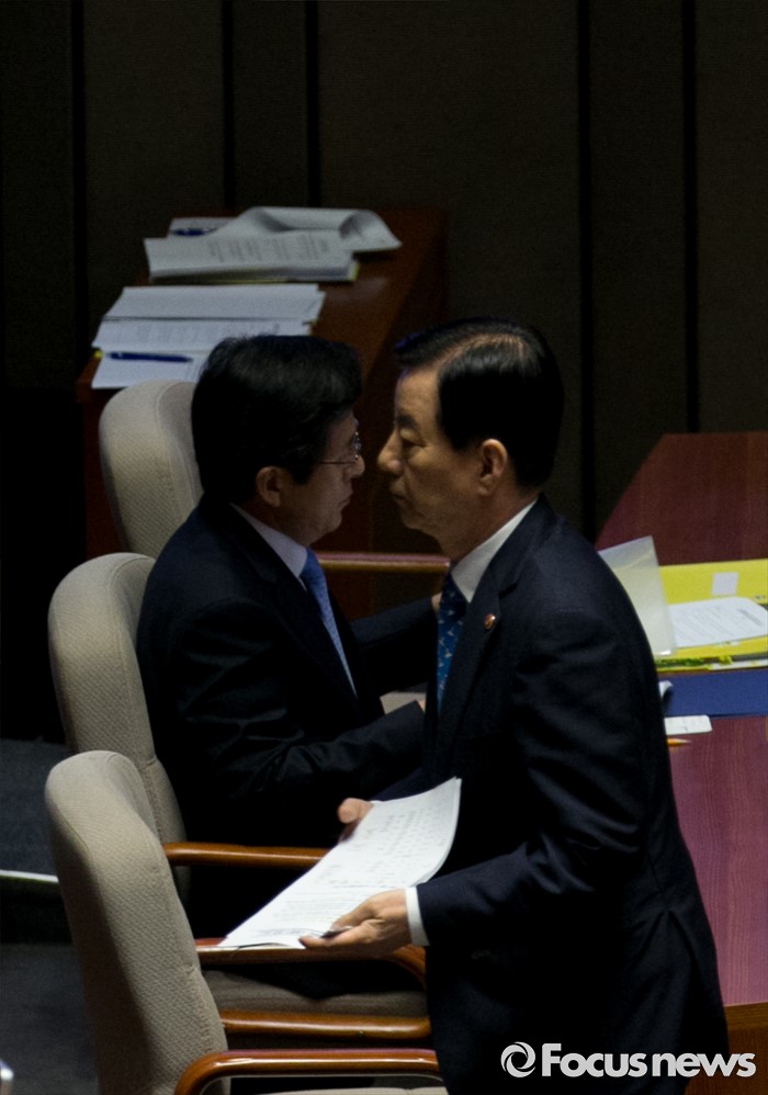 (서울=포커스뉴스) 19일 오전 서울 여의도 국회에서 열린 344회 국회(임시회) 1차 본회의, 사드(THAAD·고고도미사일방어체계) 배치에 대한 긴급현안질문에 참석한 한민구 국방부 장관이 의원들의 질문에 답한 뒤 자리로 향하고 있다. 왼쪽은 황교안 국무총리.