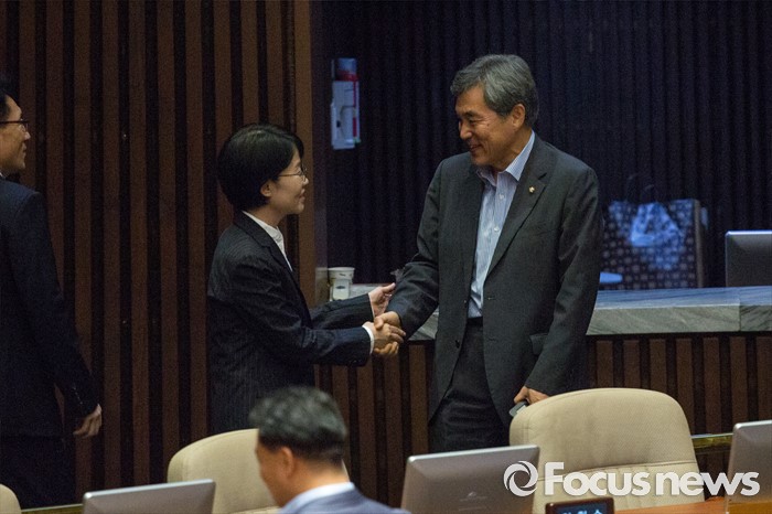 (서울=포커스뉴스) 박선숙(왼쪽) 국민의당 의원과 이상돈 국민의당 의원이 19일 오전 서울 여의도 국회에서 열린 제344회 국회(임시회) 1차 본회의에 참석해 동료 의원들과 대화 하고 있다.
