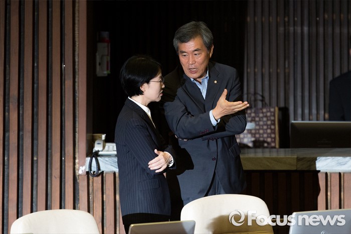 (서울=포커스뉴스) 박선숙(왼쪽) 국민의당 의원과 이상돈 국민의당 의원이 19일 오전 서울 여의도 국회에서 열린 제344회 국회(임시회) 1차 본회의에 참석해 동료 의원들과 대화 하고 있다.