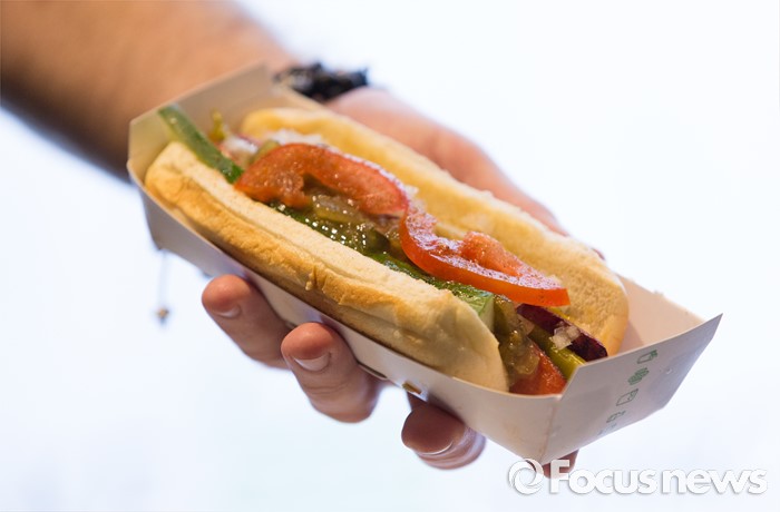 (서울=포커스뉴스) 19일 오전 서울 강남구 쉐이크쉑 강남점에서 열린 미디어 프리젠테이션 행사에서 Shack-cago Dog가 공개되고 있다.