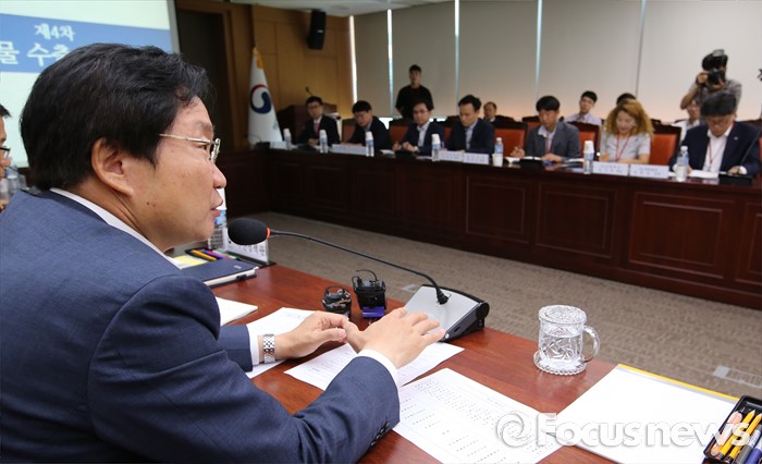 (세종=포커스뉴스) 김영석 해양수산부장관이 19일 오후 세종시 정부세종청사 해양수산부 대회의실에서 열린 제4차 수산물 수출대책회의에 참석해 회의를 주재하고 있다.