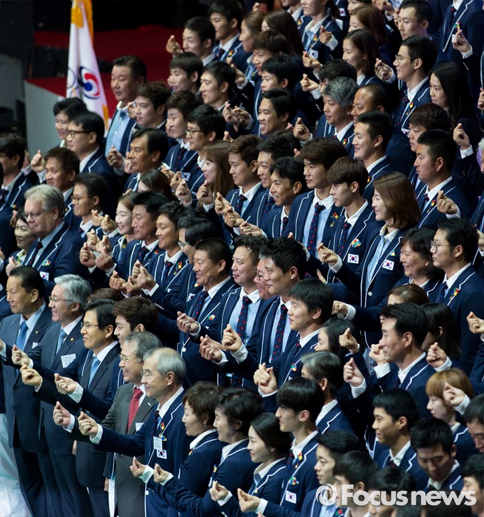 (서울=포커스뉴스) 19일 오후 서울 송파구 올림픽공원 올림픽홀에서 열린 2016 리우올림픽 대한민국 선수단 결단식에서 선수단이 기념촬영을 하고 있다.