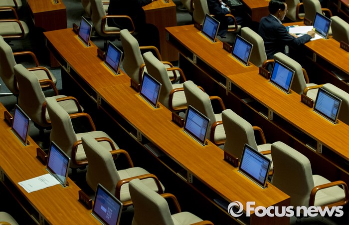 (서울=포커스뉴스) 19일 오후 서울 여의도 국회에서 열린 344회 국회(임시회) 1차 본회의, 사드(THAAD·고고도미사일방어체계) 배치에 대한 긴급현안질문에 불참한 의원들의 빈 자리가 보이고 있다.