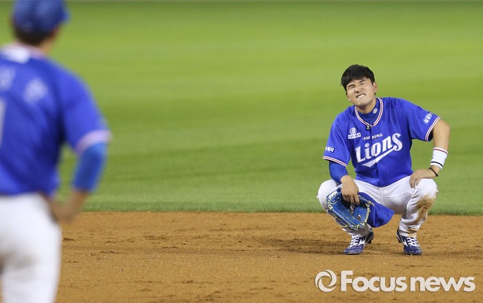 (서울=포커스뉴스) 19일 서울 잠실구장에서 열린 2016 프로야구 삼성-두산 경기 7회말 1사 1루에서 두산 에반스에게 좌월 2점 홈런을 맞고 삼성 투수 윤성환과 유격수 김상수가 진한 아쉬움을 드러내고 있다.