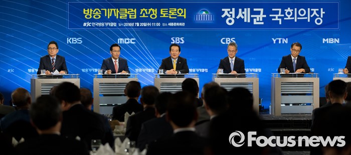 (서울=포커스뉴스) 정세균(가운데) 국회의장이 20일 오전 서울 종로구 세종문화회관에서 열린 한국방송기자클럽 초청 토론회에 참석해 모두발언을 하고 있다.