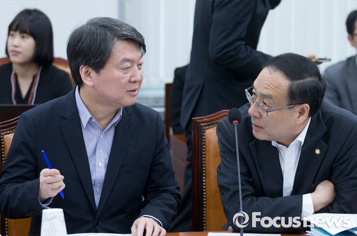 (서울=포커스뉴스) 20일 오전 서울 여의도 국회에서 열린 미래일자리 특별위원회 전체회의에 참석한 안철수(왼쪽) 국민의당 전 대표와 오세정 의원이 대화하고 있다.