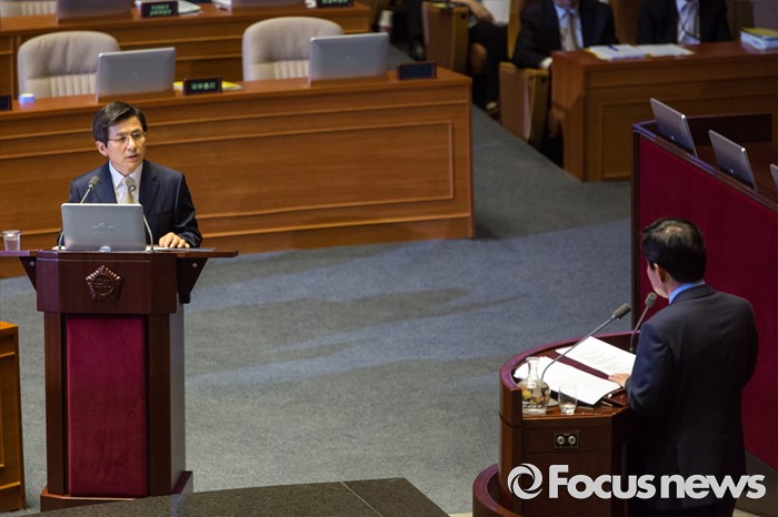 (서울=포커스뉴스) 황교안 국무총리가 20일 오전 서울 여의도 국회에서 열린 344회 국회(임시회) 2차 본회의, 사드(THAAD, 고고도미사일방어체계) 배치에 대한 긴급현안질문에 참석해 의원질의에 답하고 있다.
