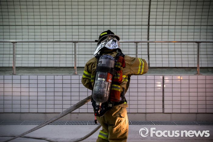 (서울=포커스뉴스) 20일 오후 서울 관악구 봉천터널 내에서 서초소방서, 방배경찰서 대원들이 강남순환도로 화재대응 유관기관 합동훈련을 하고 있다.