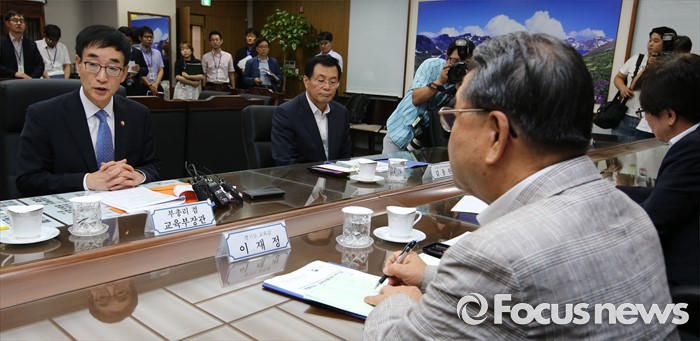 (세종=포커스뉴스) 이준식(왼쪽) 사회부총리 겸 교육부장관이 20일 오후 세종시 정부세종청사 교육부 접견실에서 새롭게 구성된 전국시도교육감협의회 회장단과 간담회를 갖고 있다.