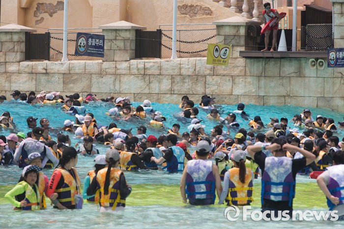 (용인=포커스뉴스) 서울과 수도권 등 전국 대부분 지역에 폭염주의보가 내려진 20일 오후 경기도 용인 에버랜드 캐리비안베이에서 시민들이 물놀이를 즐기고 있다.