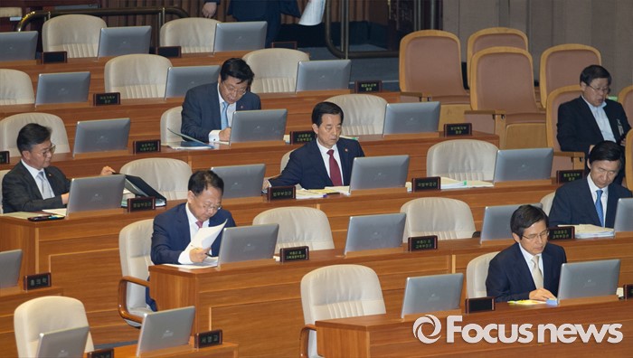 | △ 긴급현안질문 자리한 국무위원들 |
