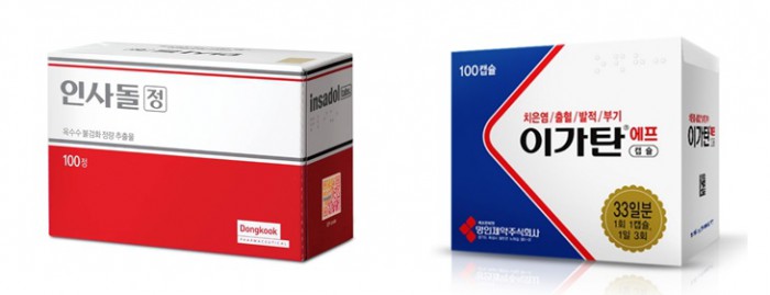 대웅제약은 2014년 10월부터 2015년 3월까지 간 기능 이상이나 지방간이 있는 지속성 피로 또는 만성피로 환자 168명을 대상으로 임상시험을 실시했고, 그 결과 간 기능 저하로 인한 피로 증상 개선 효과가 있는 것을 확인했다.잇몸약 인사돌, 이가탄 제품. <사진출처=동국제약, 명인제약>