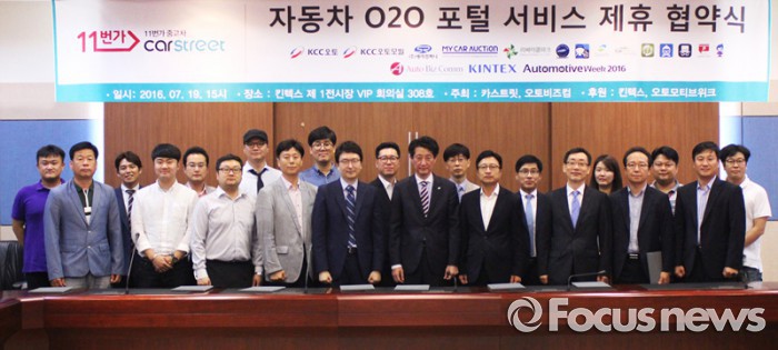 (서울=포커스뉴스) 11번가 중고차 섹션을 운영 중인 카스트릿은 19일 경기도 일산 킨텍스에서 KCC오토의 벤츠 인증중고차를 포함한 12개 자동차 관련 애플리케이션·온라인 정보 제공 서비스 기업과 '자동차 O2O 포털 서비스 제휴 협약'을 체결했다.