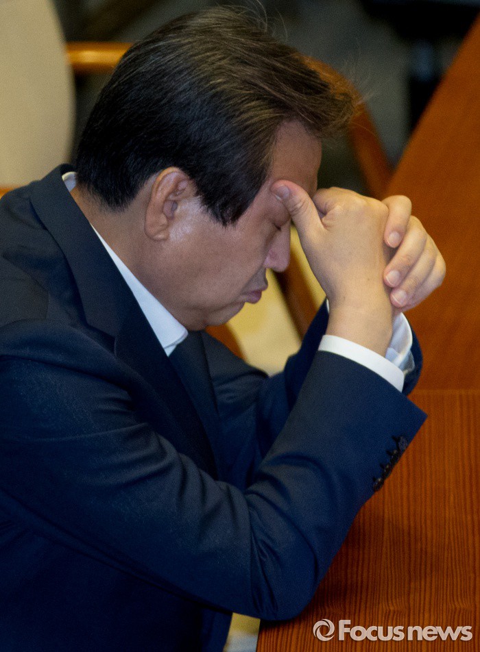 (서울=포커스뉴스) 20일 오후 서울 여의도 국회에서 열린 344회 국회(임시회) 2차 본회의, 사드(THAAD·고고도미사일방어체계) 배치에 대한 긴급현안질문에 참석한 김무성 새누리당 의원이 생각에 잠겨 있다.
