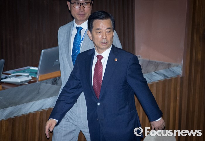 (서울=포커스뉴스) 20일 오후 서울 여의도 국회에서 344회 국회(임시회) 2차 본회의, 사드(THAAD·고고도미사일방어체계) 배치에 대한 긴급현안질문이 산회된 후 한민구 국방부 장관이 퇴장하고 있다.