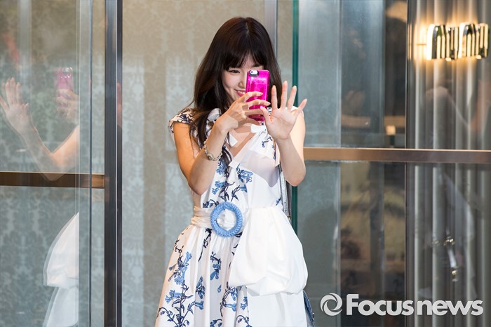 (서울=포커스뉴스) 20일 오후 서울 강남구 청담동 미우미우(Miu Miu) 부티크에서 열린오픈 기념 포토월 행사에 참석한 소녀시대 티파니가 취재진을 촬영하고 있다.