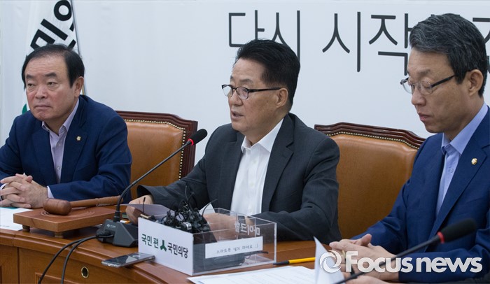 | △ 원내정책회의 주재하는 박지원 비대위원장 |