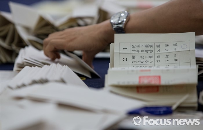 (서울=포커스뉴스) 20일 오전 서울 종로구 선거연수원에서 개표사무원들이 1987년 제13대 대통령선거 구로구을 우편투표함에서 꺼낸 투표용지를 계수하고 있다.