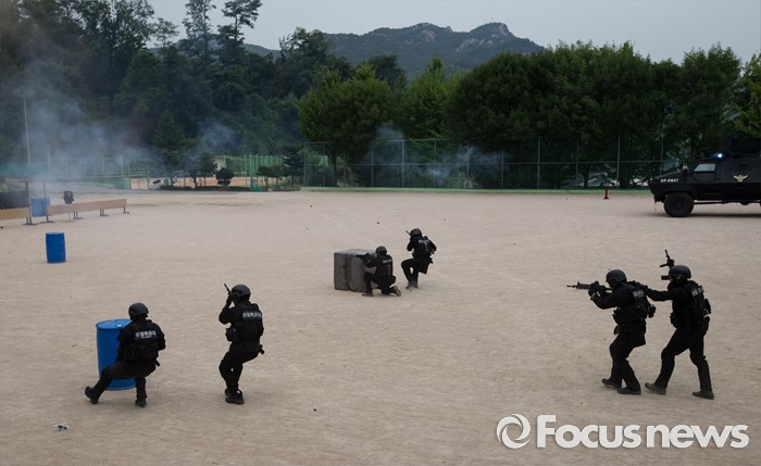 (서울=포커스뉴스) 21일 오전 서울 서초구 경찰특공대에서 경찰 특공대원들이 대테러 훈련을 하고 있다.